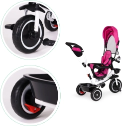 ECO TOYS kolmerattaline on loodud pakkuma lastele maksimaalset mugavust ja turvalisust. Sellel on pehme seljatugi, 5-punktilised turvarihmad ja eemaldatavad turvapiirded, mis hoiavad ära kukkumised. Kokkuvolditav vari kaitseb päikese ja vihma eest, samal ajal kui pööratav raam ja iste teevad lapse paigutamise lihtsaks. Tugevast terasest konstruktsioon muudab kolmerattalise turvaliseks ja töökindlaks.