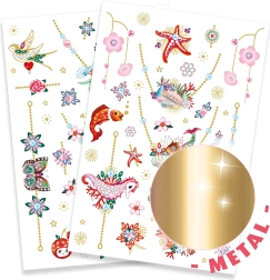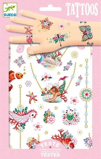 Kaunista oma nahka elegantsete ehete motiividega DJECO ajutiste tätoveeringutega. Komplektis on 2 lehte käevõrude, sõrmuste ja kaelakeede piltidega. Pealekandmine on lihtne, kiire ja dermatoloogiliselt testitud, nii et saate nautida turvalist ja loovat lõbu sõbrannadega.