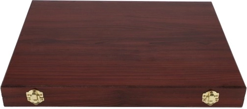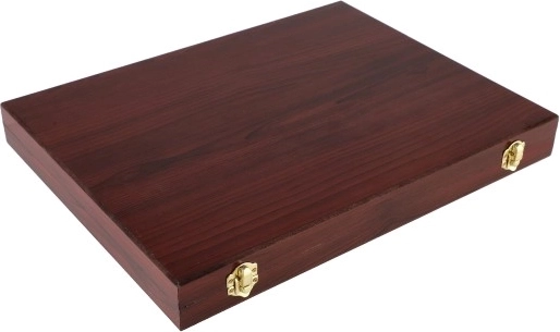 Tänu puidust kohvrile on kõik tarvikud korrapäraselt paigutatud ja alati käepärast.