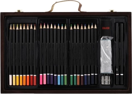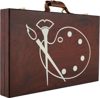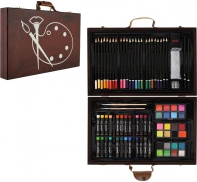 Värvide ja tarvikutega täidetud puidust kohver on täiuslik kaaslane noortele loojatele. See sisaldab kõike, mida on vaja maalimiseks ja joonistamiseks, elegantses ja kergesti kaasaskantavas pakendis: