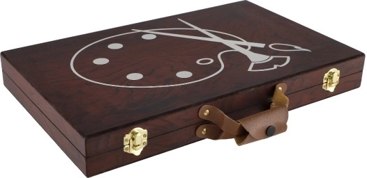 Kunstniku puidust kohver on loodud lihtsa kaasaskantavuse jaoks tänu praktilisele sangale ja vastupidavale materjalile.