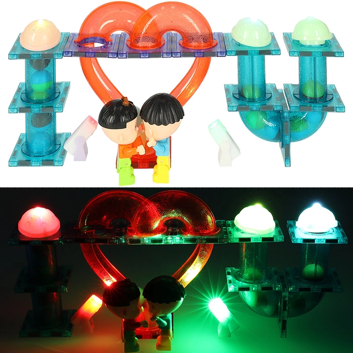 Kuulide liikumine aktiveerib valguse ning koos valgustatud detailidega tekib haarav valgusetendus, mis motiveerib lapsi edasi ehitama ja katsetama.