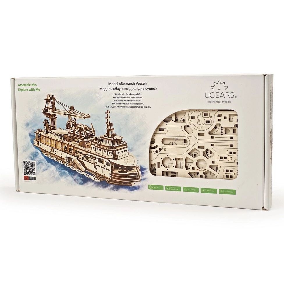 UGEARSi okeanograafilise uurimislaeva mehaaniline mudel on täpne puidust ehituskomplekt, mis köidab nii nõudlikke loojad kui ka kollektsionääre. Tänu 575 täpselt lõigatud detailile ja kõrgele raskusastmele naudid intensiivset ehituskogemust tulemusega, mis tõesti ärkab ellu – nähtavad mehhanismi osad võimaldavad jälgida jõuülekannet reaalajas.