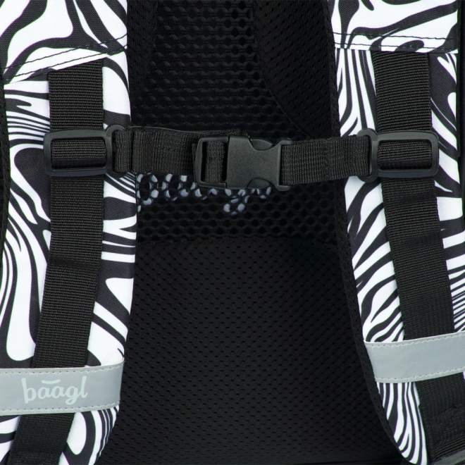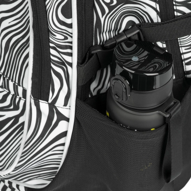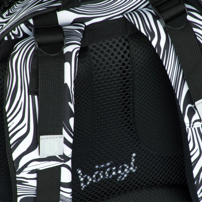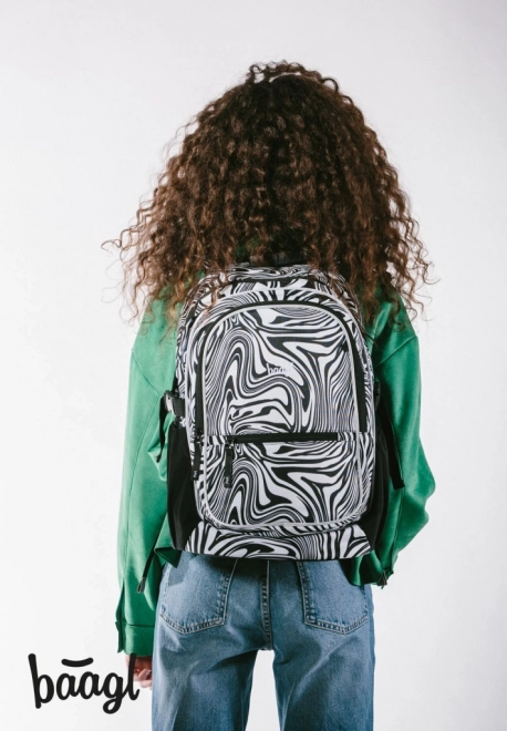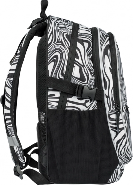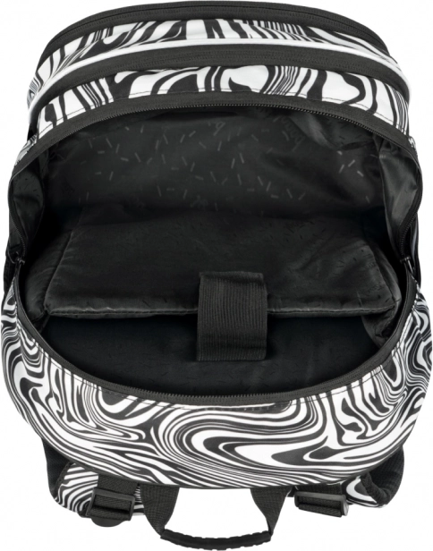 Stiilne BAAGL Core Mixture kooliseljakott must-valge mustriga pakub ergonoomilist seljapaneeli, madalat kaalu 900 g ning kolme lahtrit korraldaja ja 15" sülearvuti taskuga. Täielikult reguleeritavad rihmad, küljetaskud pudeli jaoks, veekindel materjal ja helkurelemendid teevad sellest ideaalse igapäevaseks kooliskäimiseks.