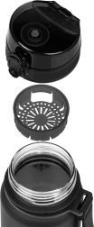 Stiilne 350 ml tritaanpudel on ideaalne kooli, matkale ja sporti. Pakub lukustatavat korki lekke vältimiseks, praktilist randmepaela kandmiseks ja sõela maitsestatud jookide jaoks. Valmistatud kvaliteetsest BPA-vabast tritaanist, lõhnatu ja sobib ka kuumadele jookidele.
