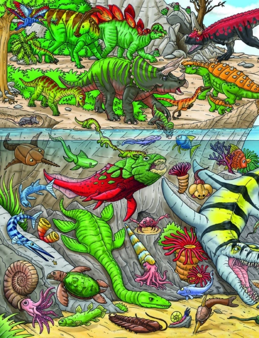 See suur illustreeritud raamat viib väikesed lugejad rännule ürgaega, mil Maa üle valitsesid dinosaurused. Lapsed saavad tuttavaks liikidega, kes elasid maismaal, vee all ja õhus, ning mõistavad, kuidas nende eluviisid erinesid – toitumisest ja kaitseviisidest kuni hoolitsuseni poegade eest.