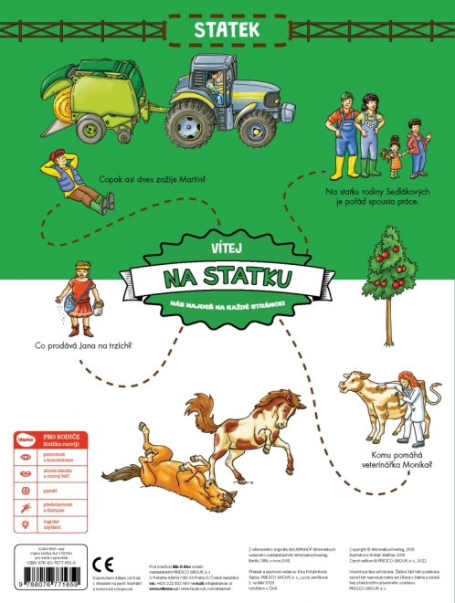See suur pildiraamat kutsub lapsi veetma terve päeva Sedlákide pere talus. Nad uurivad lautasid, õue ja põlde, tutvuvad koduloomadega ning näevad, kuidas töötatakse masinatega ja milline näeb välja tegus päev majapidamises. Iga kaheleheline laotus ärkab ellu detailsete illustratsioonide ja väikeste tegelaslugudega, mis korduvad läbi kogu raamatu.