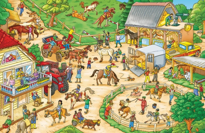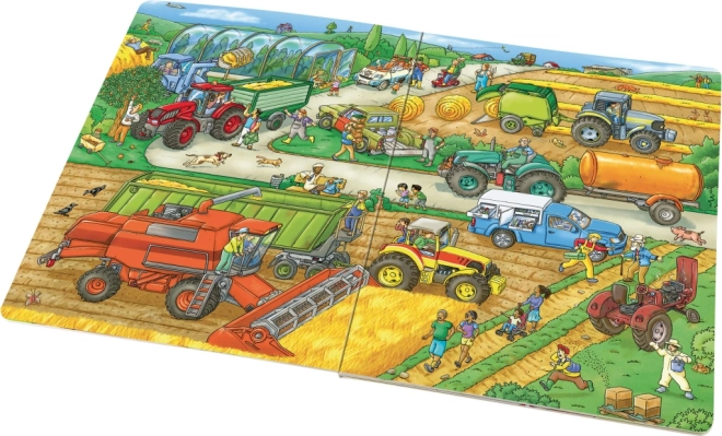 Avasta taluelu võlu selle suure pildiraamatuga, mis viib lapsed läbi kogu majapidamise. Neid ootavad loomad, töös olevad põllutöömasinad, erinevate elukutsete inimesed ja böödid stseenid. Igal kahelehelisel laotusel saavad nad otsida tegelasi ja jälgida nende lugusid – mänguline õppimine, vaatlemine ja keskendumine üheskoos.