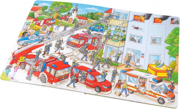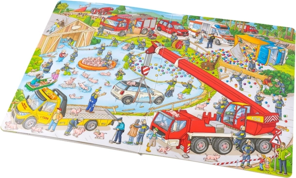 See suur pildiraamat viib väikesed lugejad tuletõrjujate tegusasse maailma. Lapsed näevad, kuidas valmistutakse väljasõiduks, kuidas töötavad pikk redel, voolikud ja muu tehnika ning kuidas toimub inimeste päästmine põlevatest hoonetest. Illustratsioonid on detailirohked ja kutsuvad lugusid välja mõtlema.