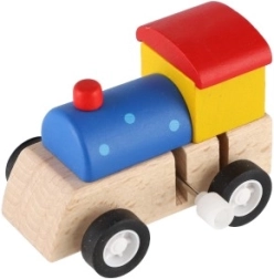 Ohutu puidust teostus ja erksad värvid kutsuvad mängima ning arendavad kujutlusvõimet. Vedur on saadaval erinevates värviversioonides (assortii), sobib hästi väikseks preemiaks, suveniiriks või täienduseks puidust rongiradadele.