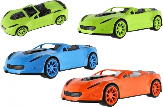 Suur plastikust sportauto avatud keredisainiga rõõmustab väikseid võidusõitjaid realistliku välimuse ja sujuva vabakäigusõiduga. Sobib nii lastetuppa kui mänguväljakule – on kerge, vastupidav ja tänu võrgus pakendile lihtne kaasas kanda.