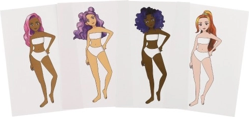 Komplektis on 8 erineva välimusega modelli, et lapsed saaksid luua mitmekesiseid moestiile ja katsetada disainiga.