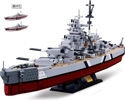 Ehita legendaarne lahingulaev BISMARCK mõõtkavas 1:350 Sluban ModelBricks ehituskomplektist, milles on 1849 detaili. Realistlik mudel pikkusega umbes 75 cm ja kõrgusega 23 cm vastupidavast ABS-plastist rõõmustab nõudlikke ehitajaid. Komplektis on trükitud juhend ja kleebised; klotsid on ühilduvad Lego, Cobi ja Mega Bloksiga.