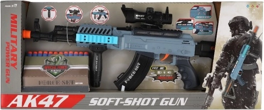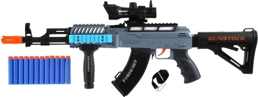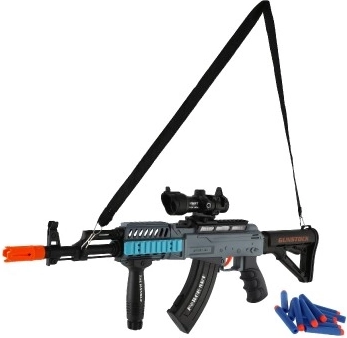 Automaat on realistliku välimusega, inspireeritud kaasaegsetest püssidest, ergonoomse hoiu ja eemaldatava salvega. Vastupidava plasti ja madala kaalu kombinatsioon sobib suurepäraselt väiksematele lastele.