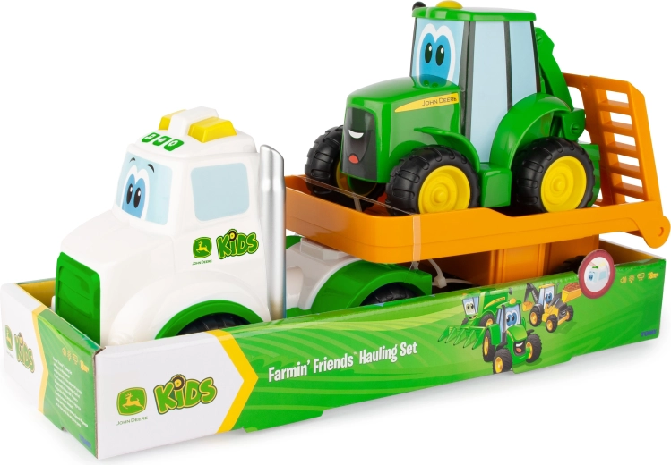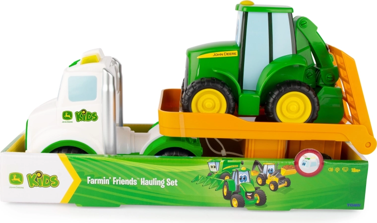 See mängukomplekt ühendab kaldteega haagise ja sõbraliku traktori Johnny klassikalistes JOHN DEERE värvides. Lapsed harjutavad peenmotoorikat laadimisel ja mahalaadimisel ning arendavad kujutlusvõimet farmimängude kaudu. Tänu 37 cm pikkusele on komplekt hästi haaratav ja stabiilne.
