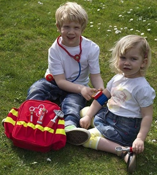Avasta kompaktse seljakoti sees arstivarustus, mis on loodud väikestele kätele ja suurele fantaasiale. Punane kott silmapaistva meditsiiniristi ja helkurtriipudega parandab nähtavust õues mängides, samas kui nutikad taskud hoiavad kõik vahendid kenasti käepärast. Lapsed arendavad empaatiat, peenmotoorikat ja suhtlemisoskust arsti rollimängude kaudu.