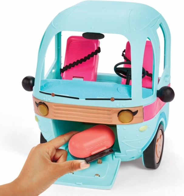 Liikuv maja ratastel toimib nii sõiduki kui ka täieliku nukumajana. Lapsed saavad nukkude eest hoolitseda, valmistada „pikniku“, meikida peegli ees, lõõgastuda basseini ääres või suunduda uuele väljasõidule. Modulaarne ülesehitus ja rohke lisavarustus toetavad fantaasiat, peenmotoorikat ja sotsiaalset mängu.