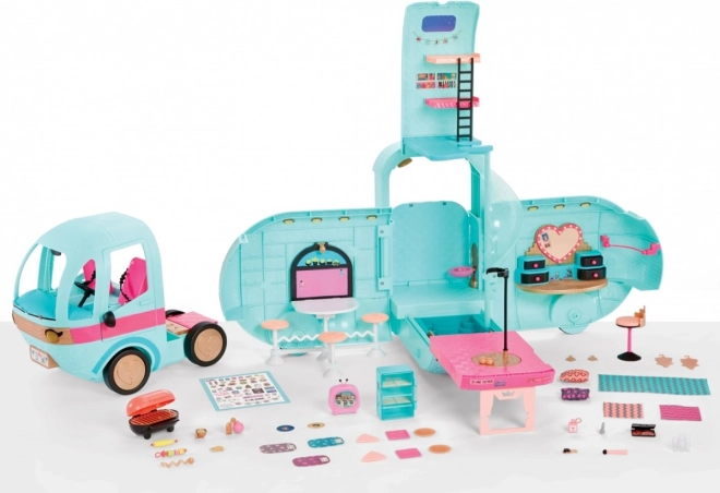 Glam N Go camper toob ühte kohta moe, lõbu ja telkimise. Avamisel ilmub mänguala voodi, tualettlaua, basseini ja grilliga – just see, mida lapsed oma teelugudeks vajavad. Detailitäpsuse ja kirkate värvide tõttu on mäng nukkudega maksimaalselt haarav.