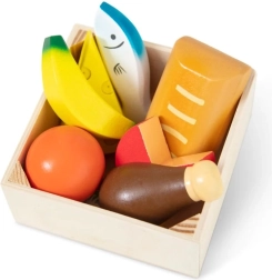 Komplektis on puidust ja plastist elemendid, mis on vastupidavad ja ohutud alates kahest eluaastast. Lapsed võivad õppida erinevate toidugruppide kohta ja parandada oma oskusi mängides.
