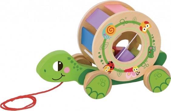 Kogege rõõmu ja õppimist selle tõmmatava kilpkonnaga, mis saab teie lapse suurepäraseks kaaslaseks. See innovatiivne mänguasi toimib kujundite sorteerijana ja pakub kuut ava erinevate kujundite sisestamiseks, sealhulgas üht suurt ja viit väiksemat. Tänu ees olevale nöörile saavad lapsed seda hõlpsalt enda järel vedada ja nautida liikumisrohkeid hetki.