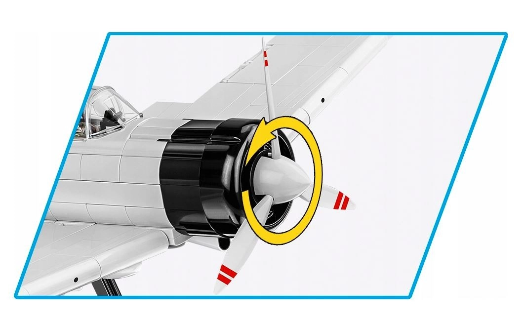 Naudi autentseid elemente, nagu avatav kabiin piloodi jaoks, liikuv propeller ja tiivapinnad, väljakeritav telik kummiratastega ning nimesildiga plaadike. Komplekti kuulub ka selge juhend lihtsaks ja sujuvaks kokkupanekuks ning esitlusalus dünaamiliseks eksponeerimiseks.