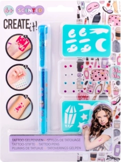 Tätoveerimiskomplekt CREATE IT! muudab iga pärastlõuna loovaks töötoaks. Looge ainulaadseid ajutisi tätoveeringuid lõhnavate geelpliiatsite ja šabloonide abil, mis tagavad puhtad ja kaunid kujundid. Sädelevad kivikesed annavad motiividele efektse läike.