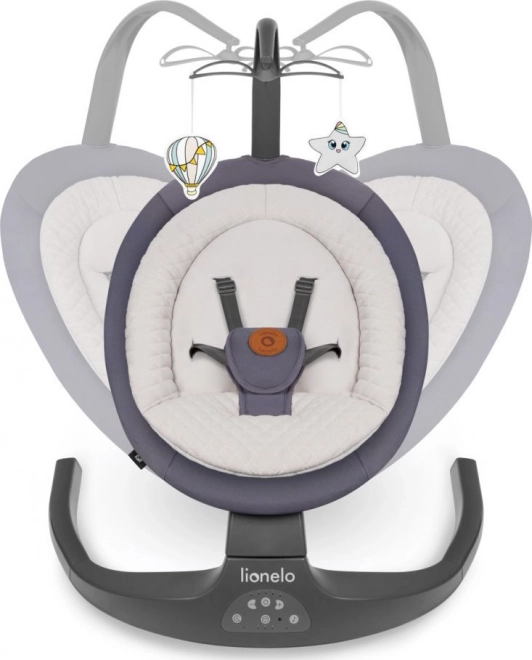 Praktiline LIONELO 2-ühes beebilehter Ralf pakub lapsele mugavat kohta mängimiseks, puhkamiseks ja magamiseks. Tänu kiikumisfunktsioonile koos automaatse liikumistuvastusega, 5 kiirusega ja taimeriga (8/15/30 min) rahuneb beebi hõlpsasti. Lehtrelel on profiilitud iste pehme padjaga, 12 meloodiat helitugevuse reguleerimisega, kaugjuhtimine ning eemaldatav mängukaar kahe mänguasjaga. Turvalisuse tagavad 5-punkti rihmad ja libisemist takistavad katted.