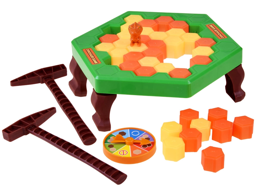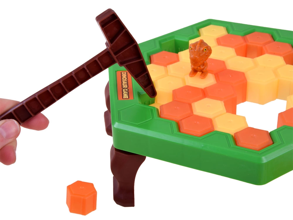 Mäng arendab strateegilist mõtlemist ja peenmotoorikat. Igas voorus keerutate ratast, mis määrab, millised ja kui palju klotse peate eemaldama nii, et dinosaurus ei kukuks.