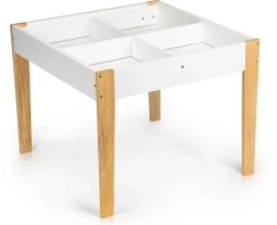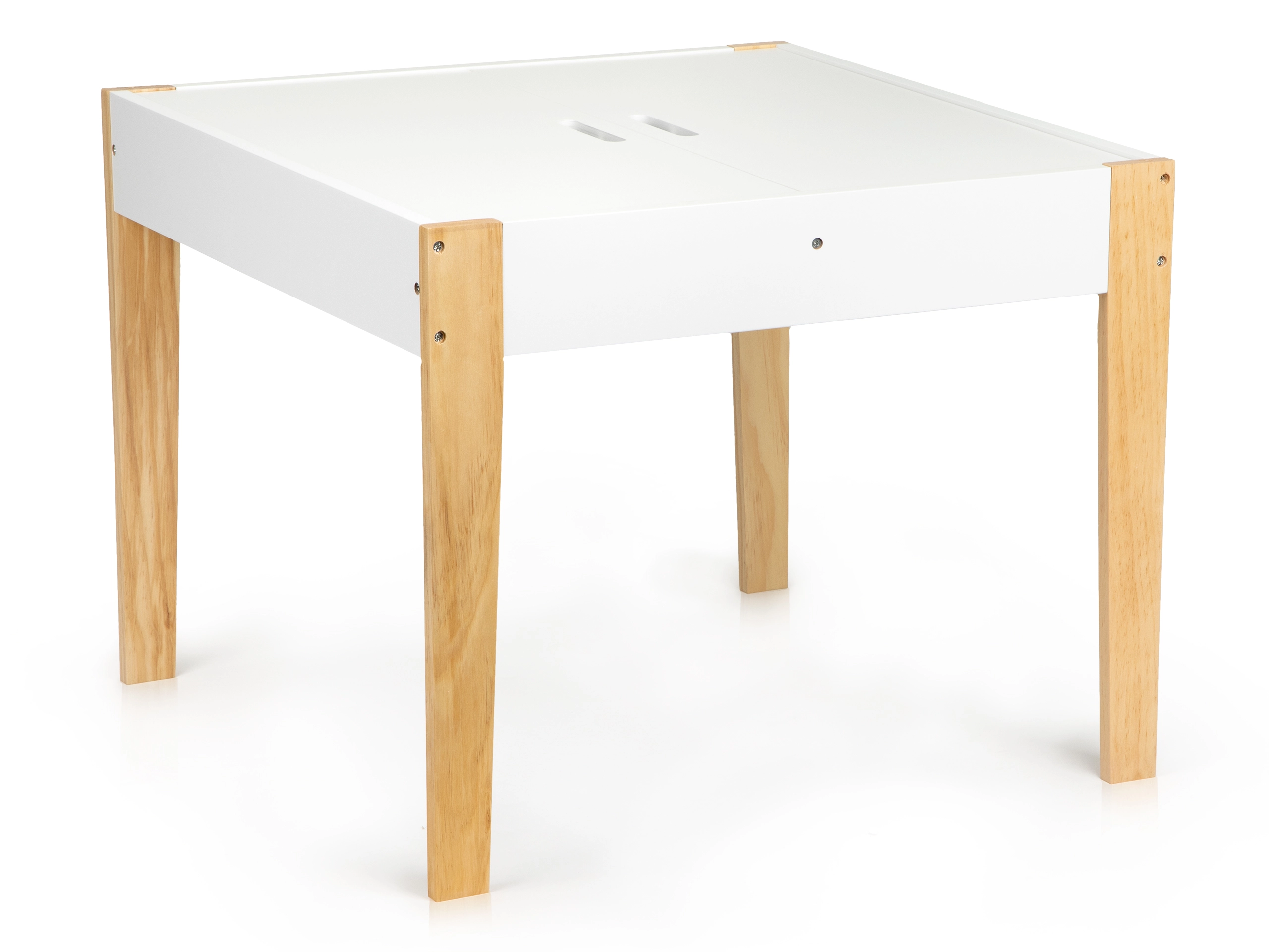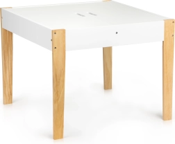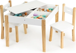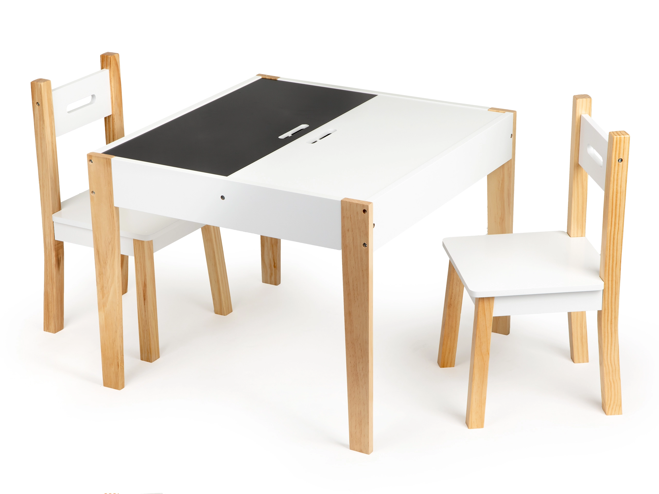 Pärast mängu saab kõik mänguasjad hõlpsasti paigutada eemaldatava lauaplaadi alla. Komplektis on kaks mugavat tooli männjalgadega.