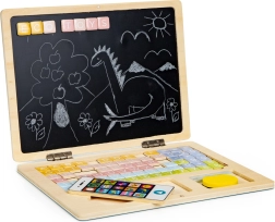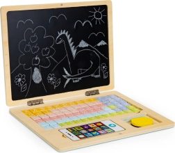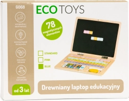 ECO TOYS puidust õpetlik sülearvuti on multifunktsionaalne mänguasi, mis pakub 78 erinevat tähte ja numbrit laste loovuse arendamiseks. Mängides õpivad lapsed kirjutamise, lugemise ja numbrite tundmise aluseid. Konstruktsioon on stabiilne ja ohutu, ilma teravate servadeta, tagades 100% turvalisuse väikestele lastele.