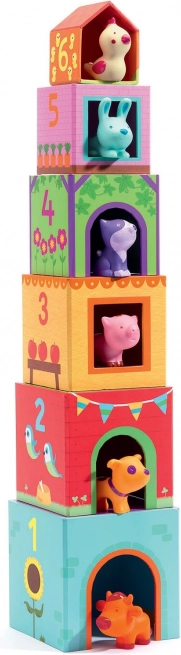 DJeco kokkupandavad klotsid on ideaalne mänguasi lastele, kes soovivad avastada ja luua. Komplekt sisaldab papist klotse, mida saab laduda torniks või reasse. Iga klotsi saab pista suurema sisse või vastupidi.