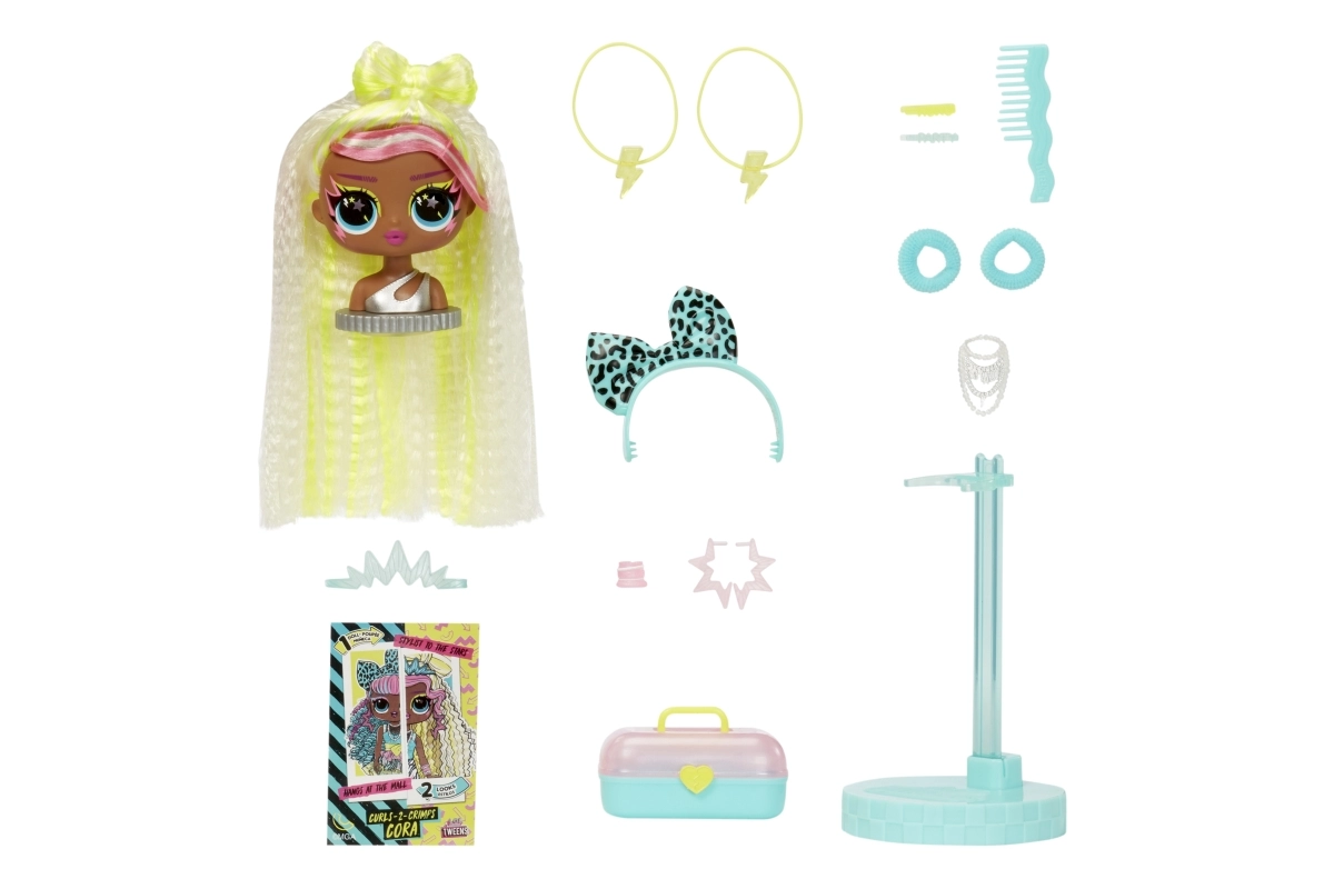 Komplektis on hari, moekad aksessuaarid ja soengupea, mis toetavad loovmängu ja stiililoomist.