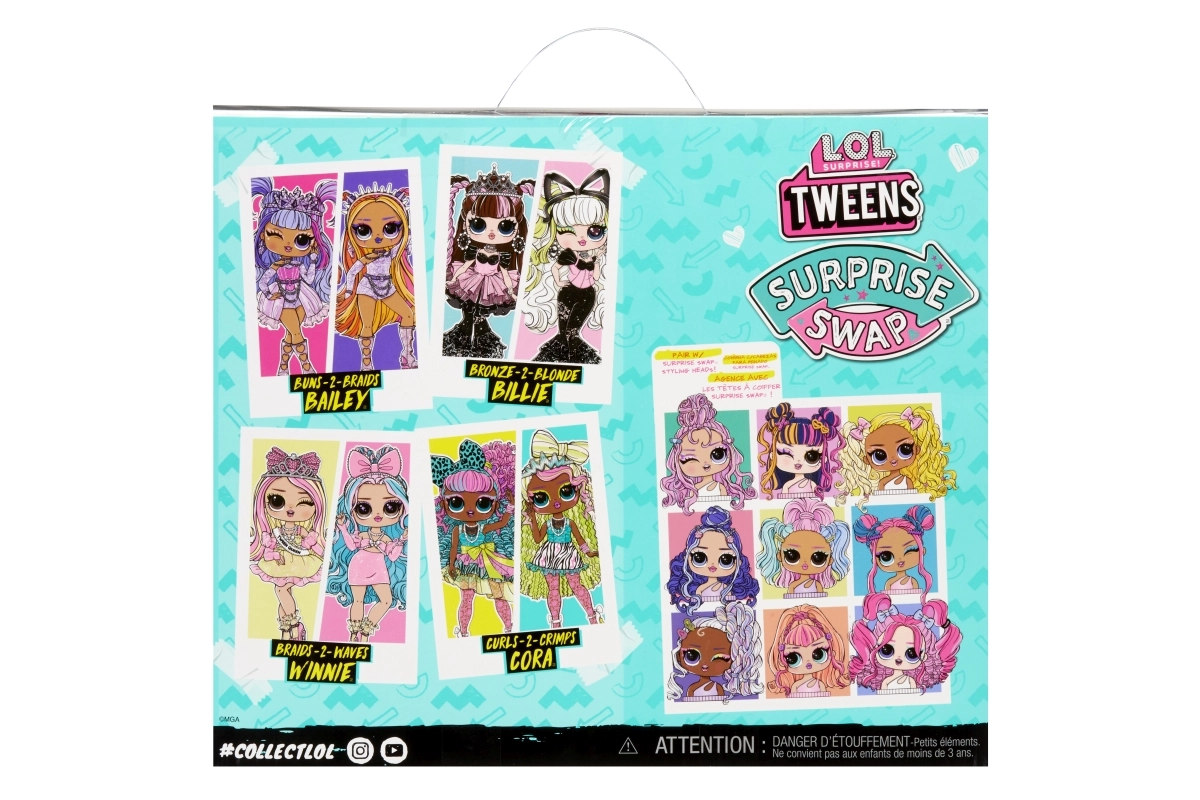 L.O.L. Surprise! Swap Tweens komplekt võimaldab nuku pea vahetamist, tuues võimaluse kombineerida stiile ja väljanägemist vastavalt tujule või sündmusele.