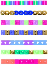Lase fantaasial lennata! See käevõrude valmistamise komplekt sisaldab rikkalikku valikut helmeid – kuldsed ketid, emotikonid, lihvitud ja triibulised helmed, läbipaistvad elemendid ning tähekleepsud – lõpututeks stiilikombinatsioonideks. Tänu lihtsale klõpskinnitussüsteemile saavad lapsed kiiresti disaini muuta ja luua sõpruskäevõrusid täpselt vastavalt tujule.