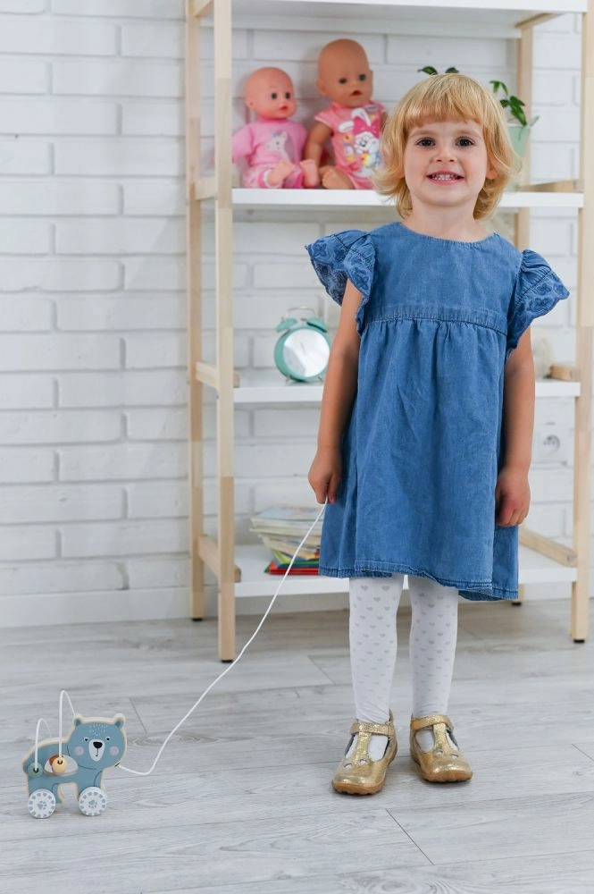 Puidust ratastel karuke püüab tähelepanu ja innustab last liikuma.