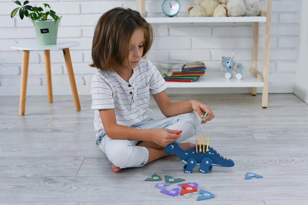 Värviline dinosauruspusle aitab lastel parandada peenmotoorseid oskusi ja koordinatsiooni.