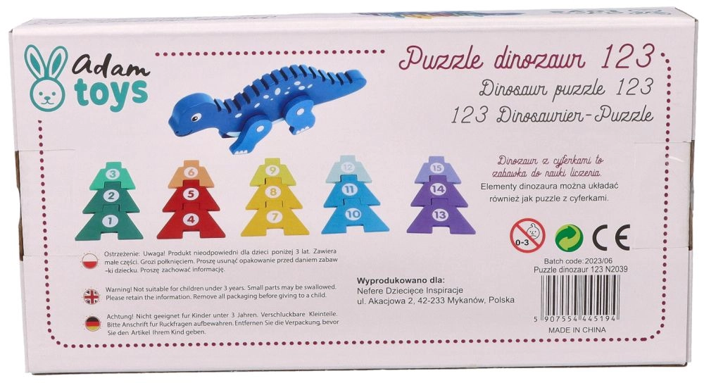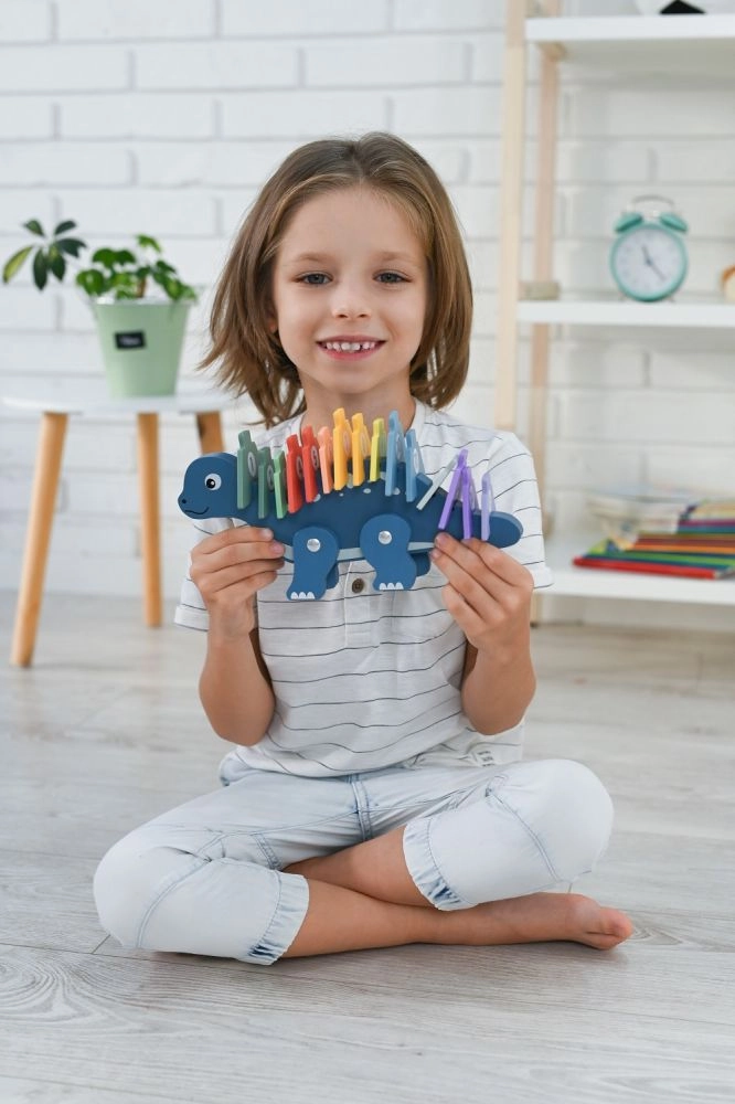 Avastage puidust dinosauruspusle võlu, mis ühendab lõbu ja õppimise. See loominguline pusle sisaldab värvilisi tükke, mida lapsed saavad asetada dinosauruse seljale, õppides samal ajal numbreid ära tundma ning parandades käe-silma koordineerimist. Mänguasi on valmistatud kvaliteetsest puidust, mis tagab selle pikaealisuse ja ohutuse mängimisel.