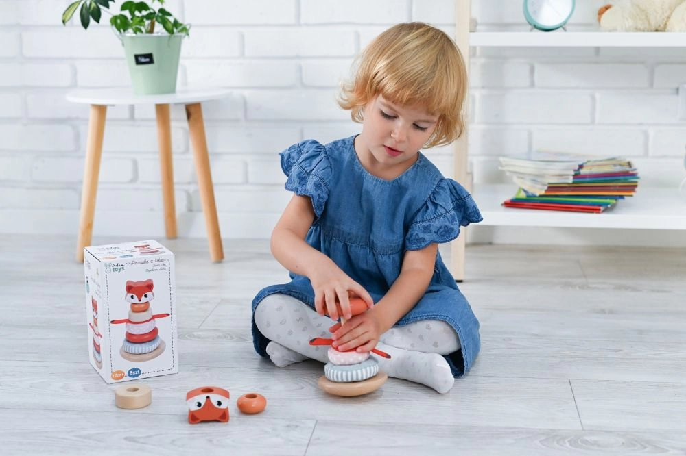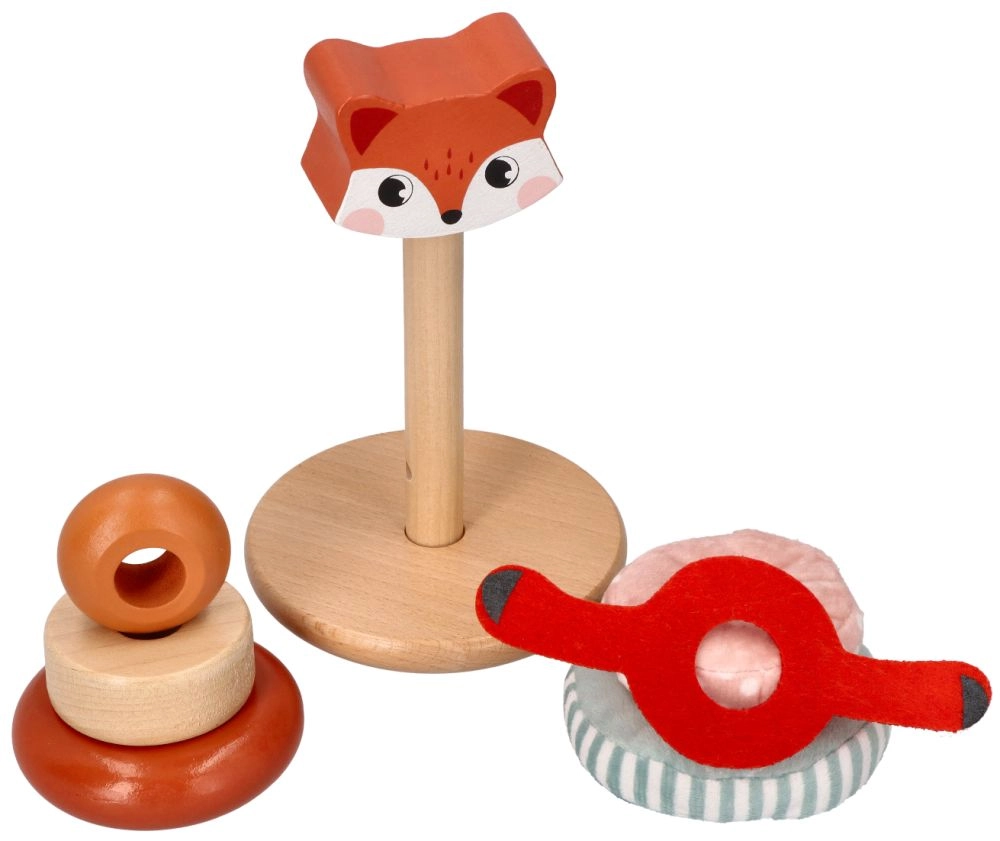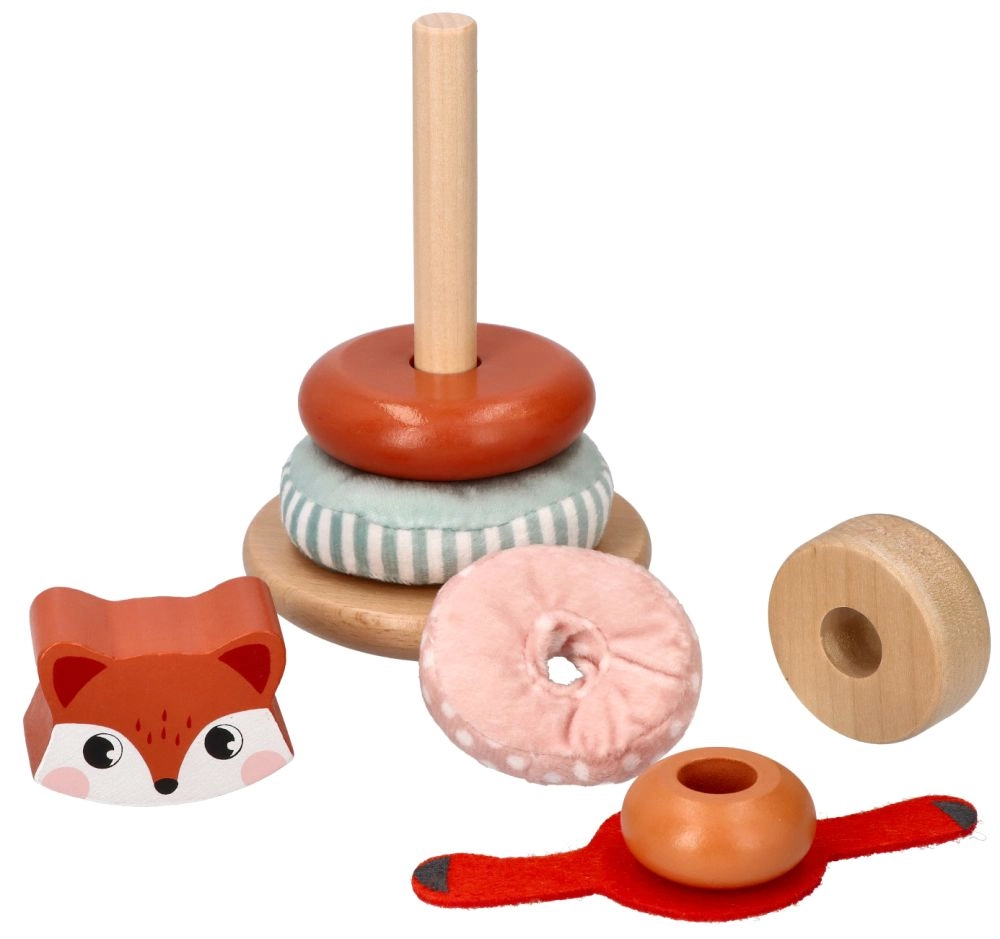 Virnastustorn rebase motiiviga on ideaalne mänguasi väikestele lastele, kes soovivad oma meeli avastada. Iga mänguasja osa pakub erinevaid tekstuure, alates siledast puidust kuni pehmete kangasteni, ning on mõeldud sensoorset integratsiooni arendama. Erksad värvid ja mustrid aitavad nägemistaju kasvul, samal ajal kui üksikosade virnastamine ja käsitsemine tugevdab peen- ja üldmotoorikat.