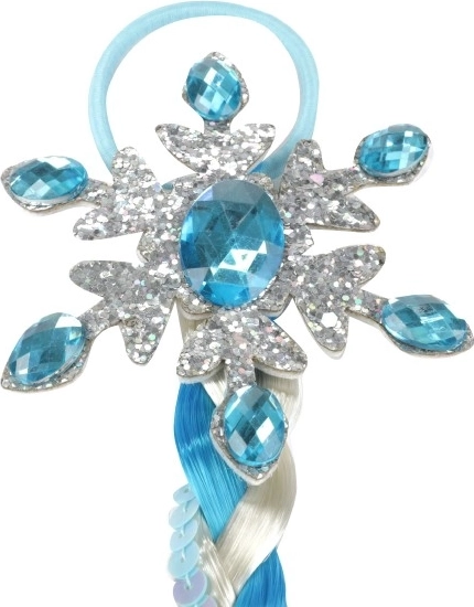 Jääprintsessi patsijuuksepahmakas on valmistatud sinivalgetest salkudest ning kaunistatud temaatiliste lumehelveste ja litritega. Tänu juuksekummile on seda lihtne kinnitada ja mugav kanda.