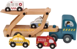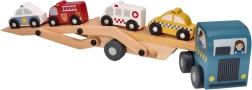Koge põnevat linnaseiklust selle kauni puidust autovedaja komplektiga, mis on täis sõidukeid loovaks mänguks. Kiirabi, politseiauto, tuletõrjeauto ja takso teevad sinu väiksemast juhist tõelise linnaliikluse meistri!