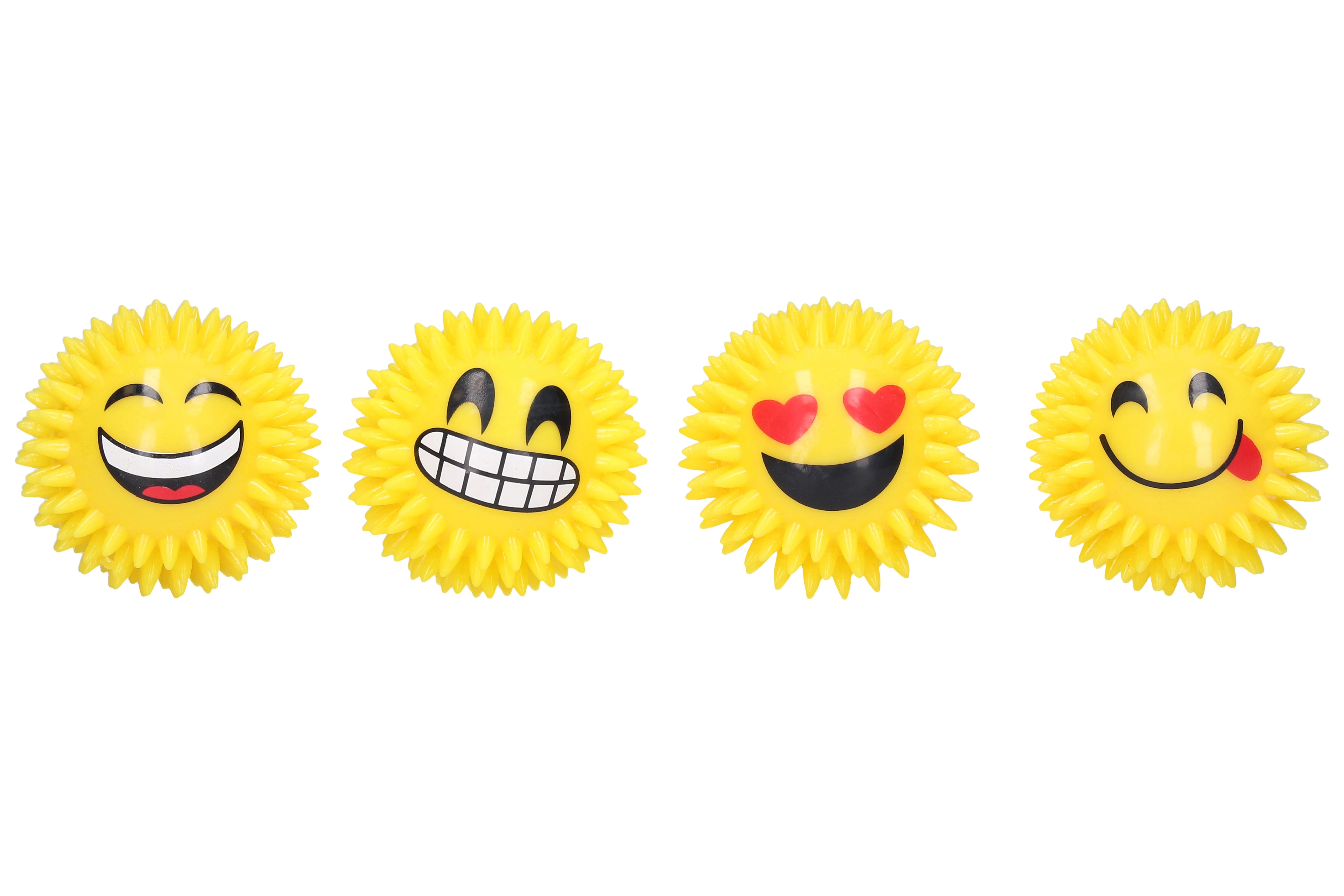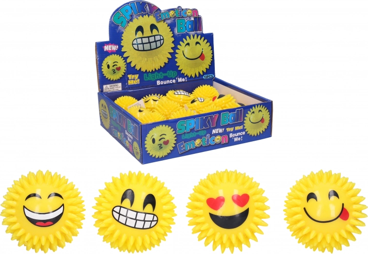 Lõbus naeratusega pall, läbimõõt 7 cm, mis piiksub vajutamisel ja pakub integreeritud LEDide abil valgusefekte. Pehmed ogad mugavaks haardeks ja lisalõbuks. Ideaalne lastele ja ka vahva antistressi vidin. Patareisid ei saa vahetada.