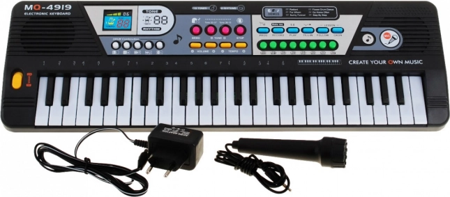 Lõbus ja lihtsasti kasutatav klaviatuur lastele alates 5. eluaastast pakub 49 klahvi, sisseehitatud mikrofoni, salvestusfunktsiooni ning laia valikut helisid, rütme ja demo-meloodiaid. Toide nii vooluvõrgust kui ka patareidest teeb selle ideaaliks nii koju kui ka reisile.
