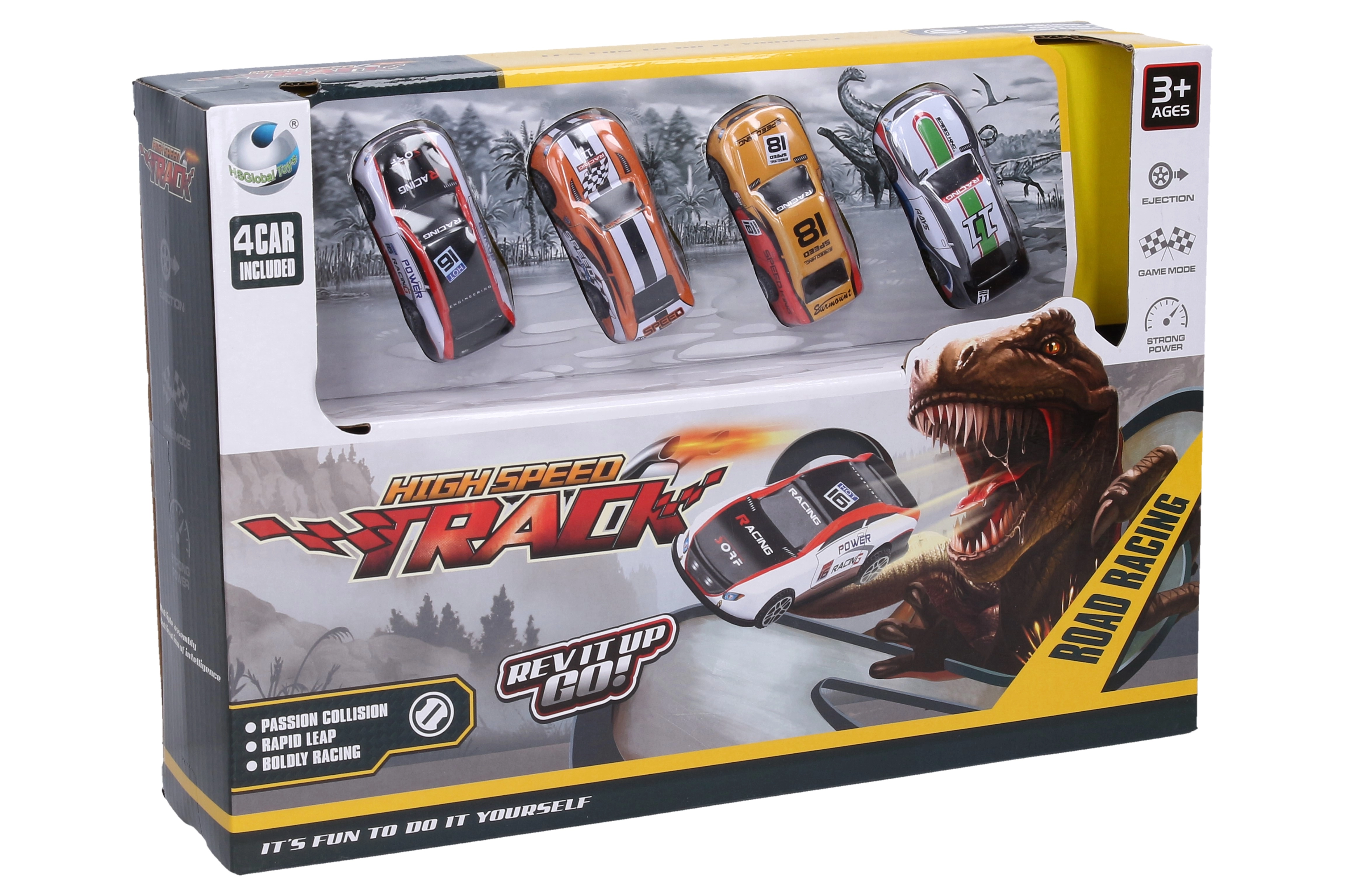 Lõbus dinosauruseteemaline stardirada toob lastele palju actionit ja kiirust. Komplektis on 4 metallist autot, mida saab rajale välja tulistada ja omavahel võidu sõita. Lihtne kokkupanek vastavalt pakendil olevale pildile ning kompaktsed mõõdud 45 × 12 × 16 cm teevad sellest komplektist suurepärase valiku väikestele võidusõitjatele alates 3. eluaastast.