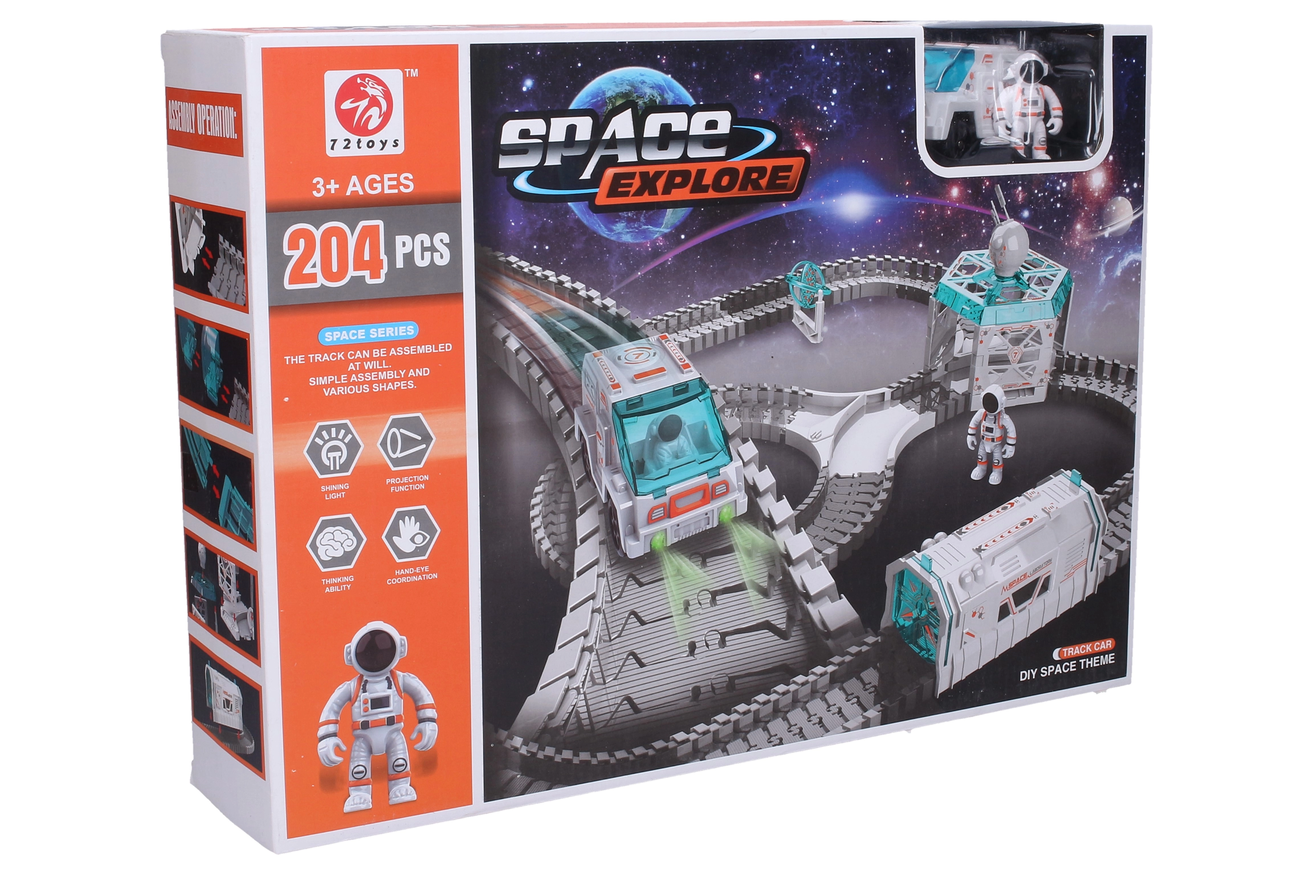 Avasta kosmose seiklused selle kosmilise võidusõidurajaga mõõtmetega 85 × 75 × 32 cm. Komplektis on auto, astronaudi figuur ja toimiv projektor valgusefektidega. Rada saab vabalt kokku panna erinevateks kujunditeks, nii et lõbu ei lõpe kunagi.