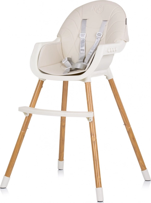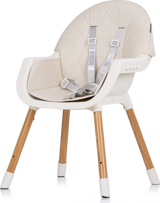 Söögitool Rio 2in1 pakub paindlikke seadistusvõimalusi, kuna seda saab kasutada nii kõrge kui ka madala toolina, ning on mõeldud iseseisvalt istuvatele lastele. Tänu mugavale istmele nahkse kattega on tool lihtsasti puhastatav ja lisab interjöörile modernse ilme. 5-punkti turvarihmad tagavad teie lapsele maksimaalse ohutuse söömise ajal.