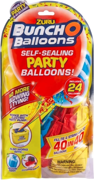 Muuda peo ettevalmistus lihtsaks ZURU Bunch O Balloons isehermetiseeruvate peobaloonidega. Kiire täitmise ja sõlmitamiseta tehnoloogia abil kaunistad ruumi hetkega – lihtsalt ühenda, täida ja kaunista. Ühilduvad nii heeliumi kui ka õhukompressoriga ning sobivad suurepäraselt sünnipäevadeks, pulmadeks ja lastipidudeks.