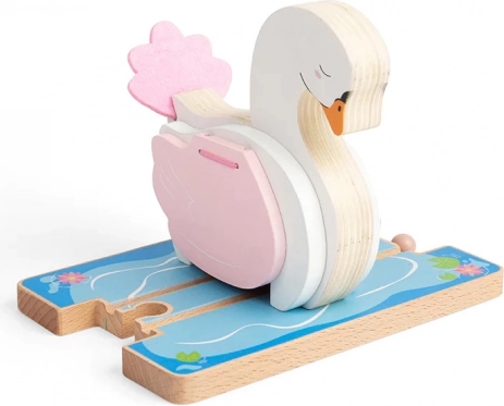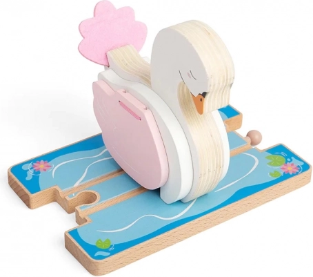 Võluv puidust luigekujuline tunnel muudab iga rongiraja muinasjutuliseks tiigiks lainetuste ja vesiroosidega. Avatavad tiivad loovad rongile läbisõiduava, samas kui kvaliteetne puidust teostus ja ühilduvus enamiku puidust raudteedega tagavad rohkelt mängurõõmu. Arendab kujutlusvõimet, peenmotoorikat ja koordinatsiooni. Rong ei kuulu komplekti.
