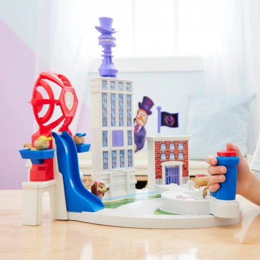 Käpapatrulli torn, liumägi, hooned ja salaelementid – paljastad silindriga Humdingeri ja lööd vangikongi ukse alla, et Vee kinni püüda.