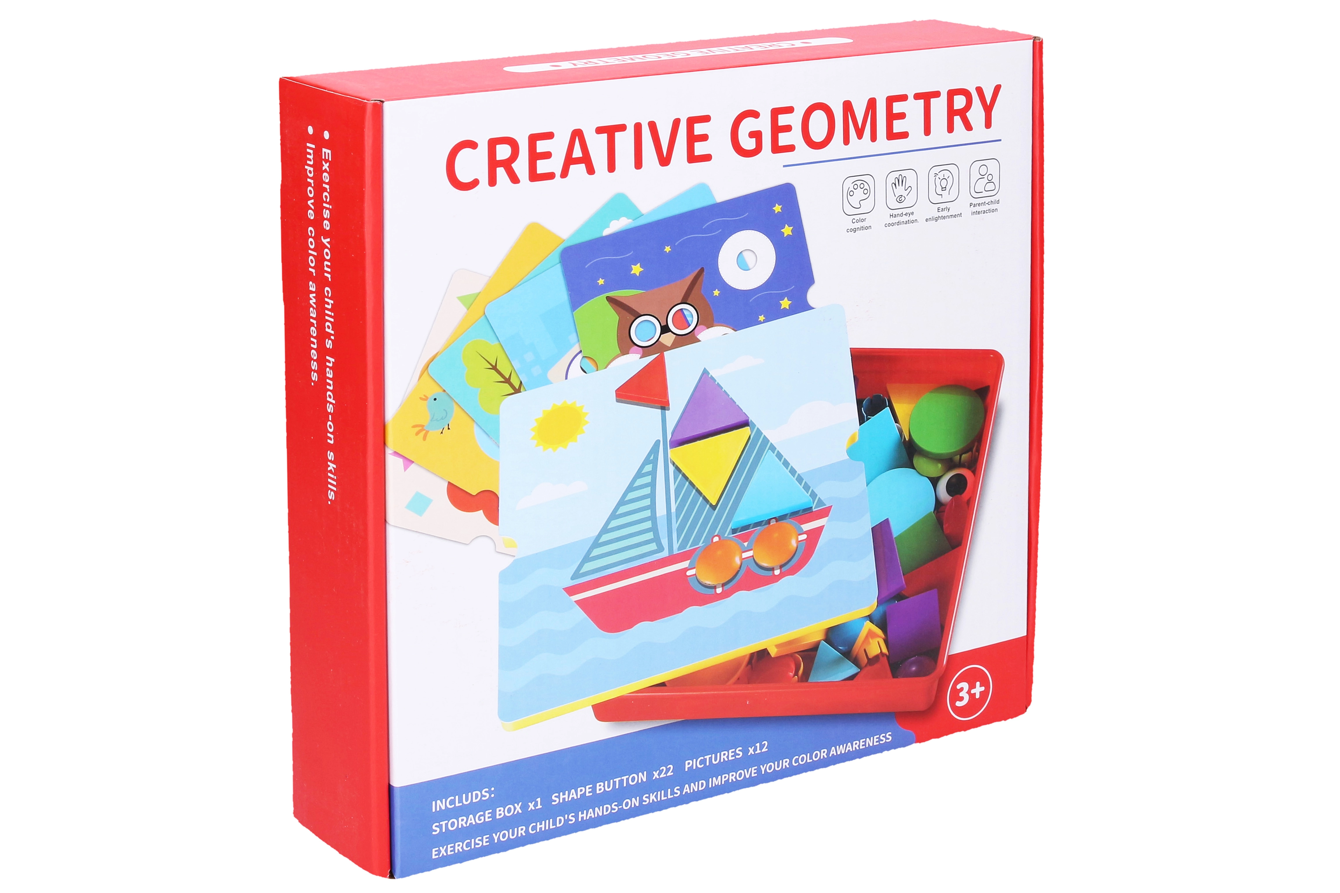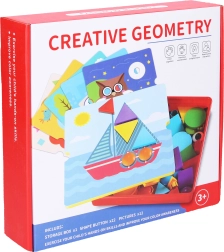 Lastele mõeldud loominguline mosaiik geomeetriliste kujunditega arendab peenmotoorikat, loogilist mõtlemist ja loovust. Komplektis on alus 25 × 25 cm, 22 kuju ja 12 šablooni lihtsaks piltide kokkupanekuks.