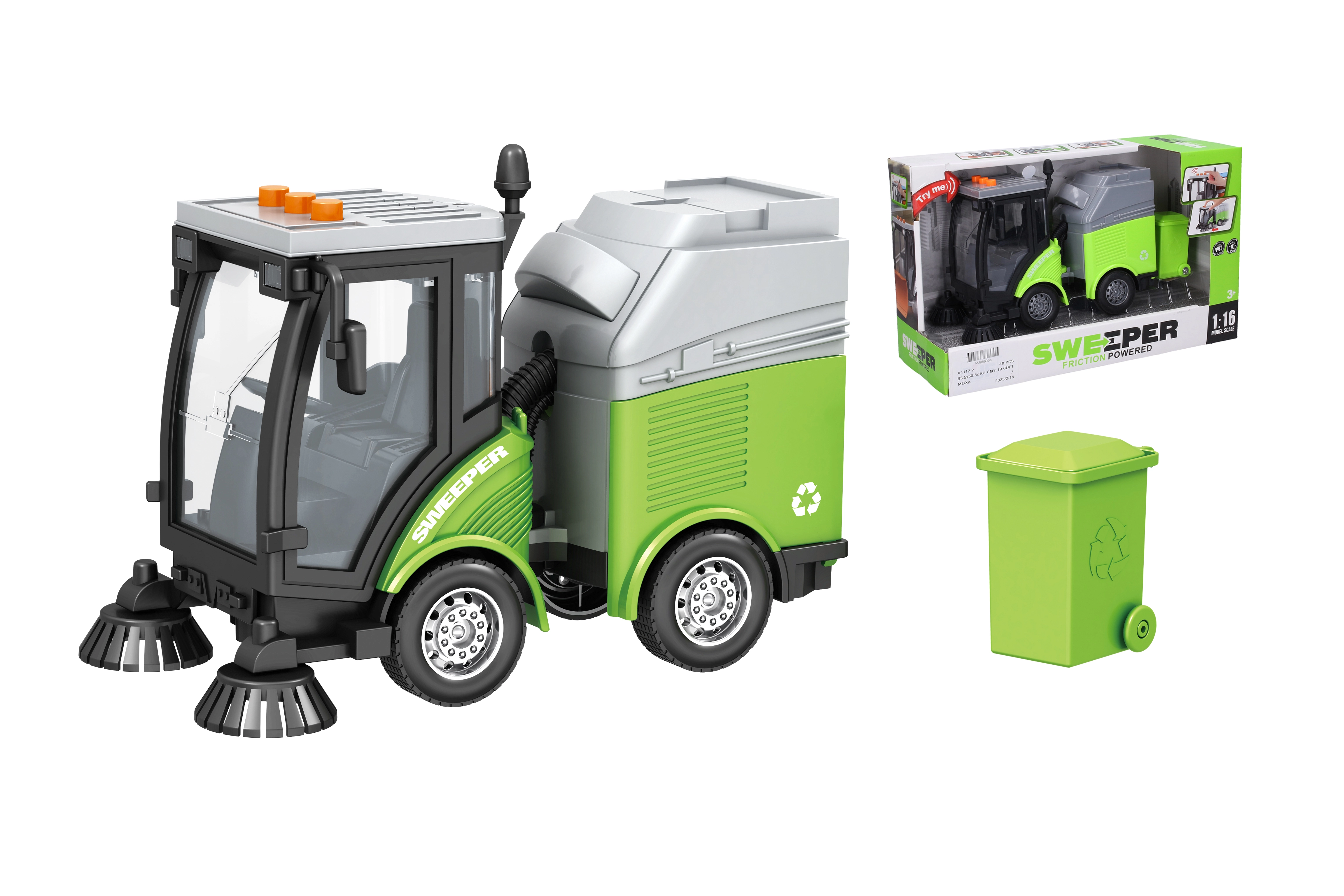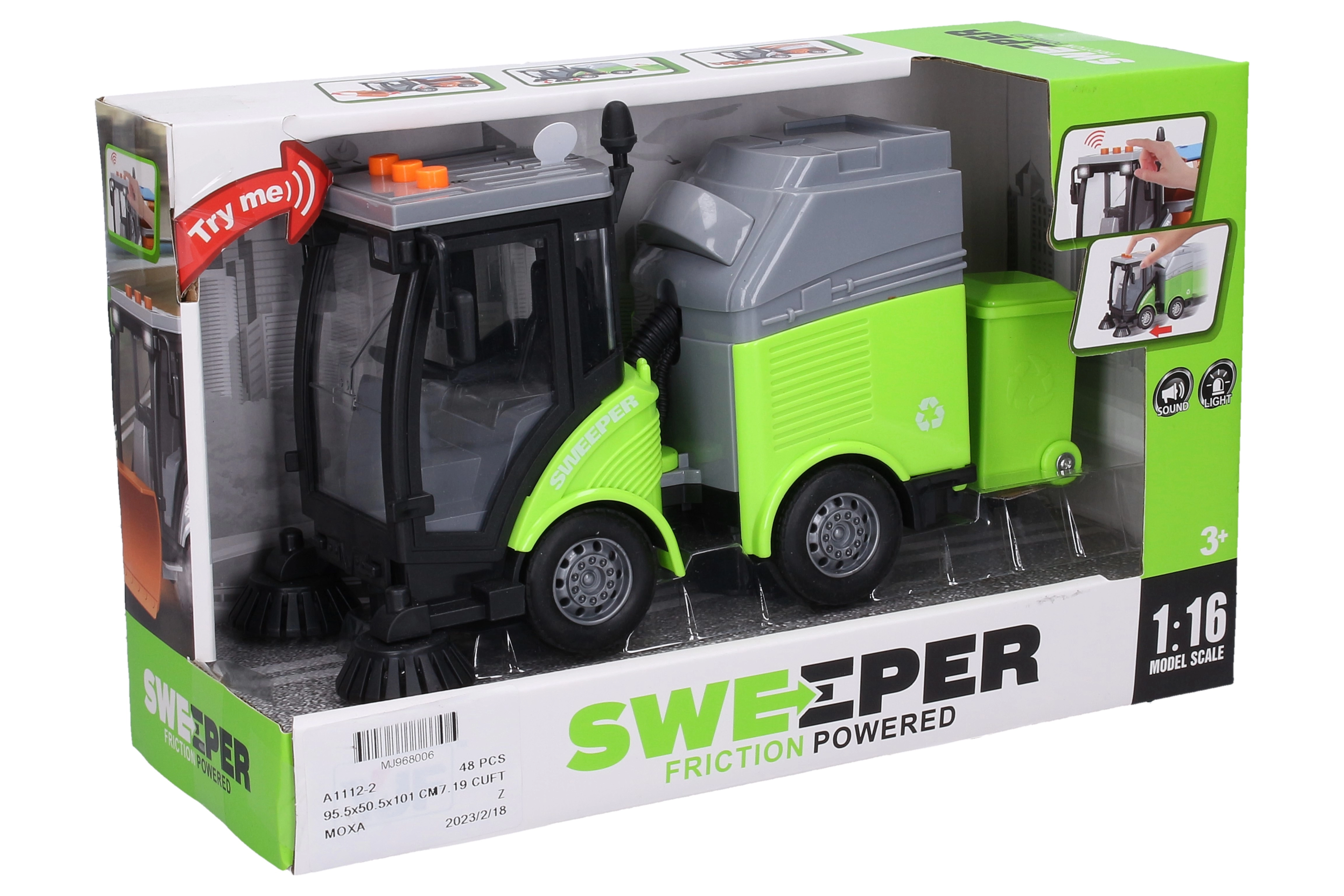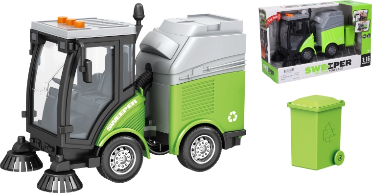 Lõbus ja realistlik puhastusauto prügikastiga pikkusega 24 cm kõigile väikestele tehnikahuvilistele. Tänu järellükkele on sõit sujuv ja lihtne, meeleolu loovad valgus- ja heliefektid, mida aktiveeritakse kabiinil olevate nuppudega – käivitamine, signaalitamine ja tagurdamine. Patareid 3× AG13 kuuluvad komplekti, nii et lõbu võib alata kohe.